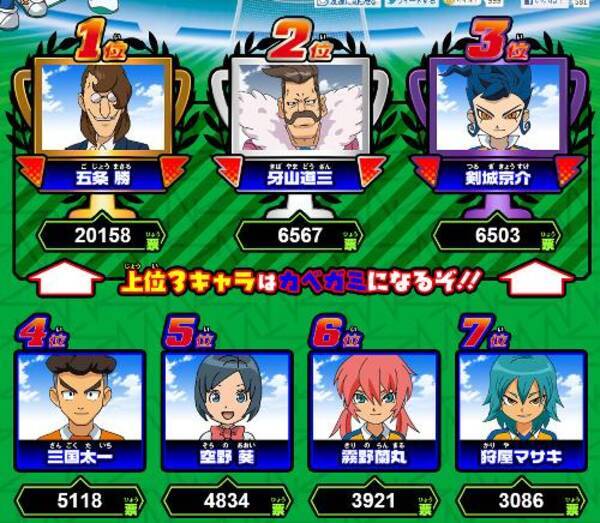 イナズマイレブン人気投票再び 組織票によりまたも五条が1位になる 運営も分かっててやってる 11年11月17日 エキサイトニュース